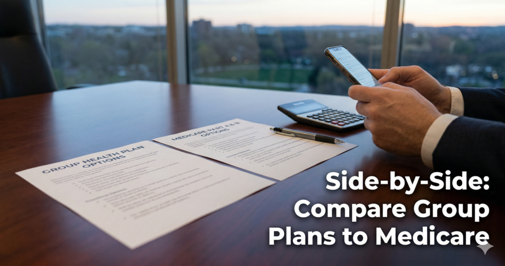 • Max Out-of-Pocket:Compare your plan’s maximum out-of-pocket (like $10,000 for some group plans) with the minimal maximum out-of-pocket for most Medicare plans (which can be as low as $0 once your deductible is met).